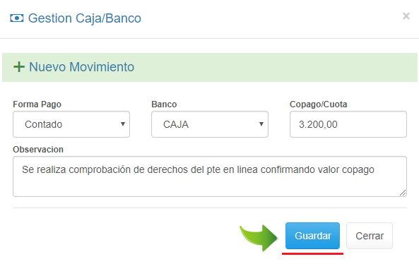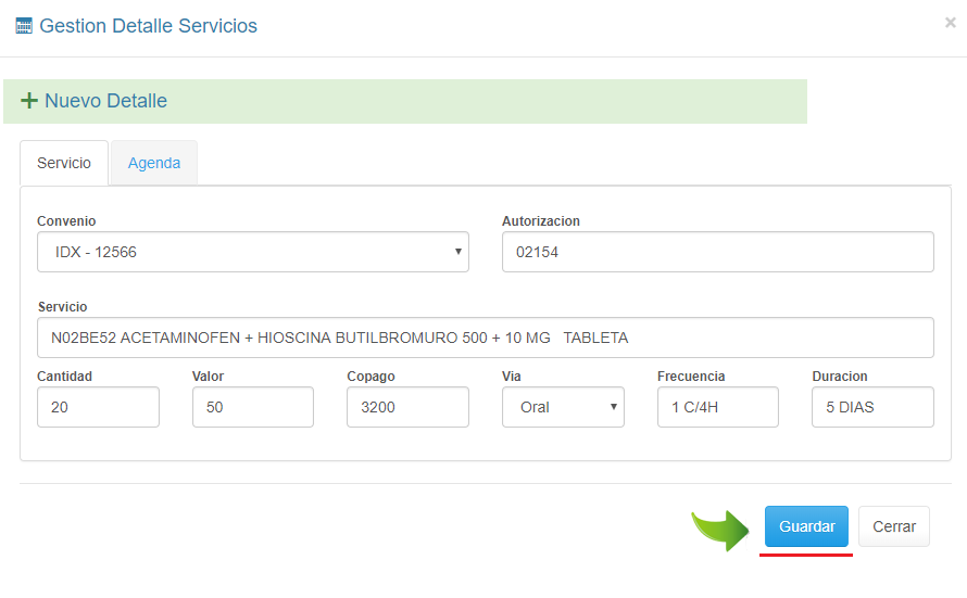 8. Al terminar de Agregar los Elementos, debes realizar el proceso de Recaudo de Copagos y Cuotas Moderadoras, descrito en el numeral 2 de Registro de Ordenes Externas. |