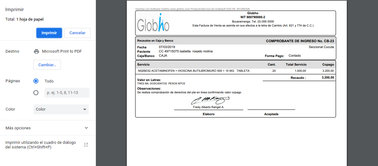 8. Al terminar de agregar los elementos, Haz clic en el botón Impresión.