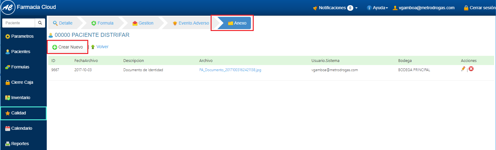 1. Ingrese al perfil del Paciente a quien va a realizar el Anexo. 2. Elige la opción Anexo y haz clic en el botón Crear Nuevo.