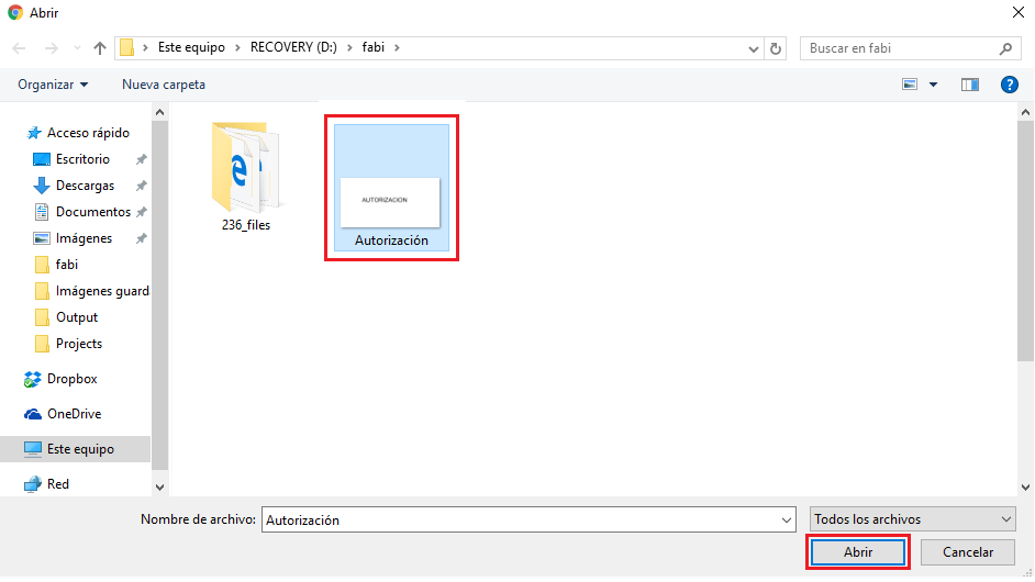 4. Selecciona el archivo que deseas subir y haz clic en abrir.