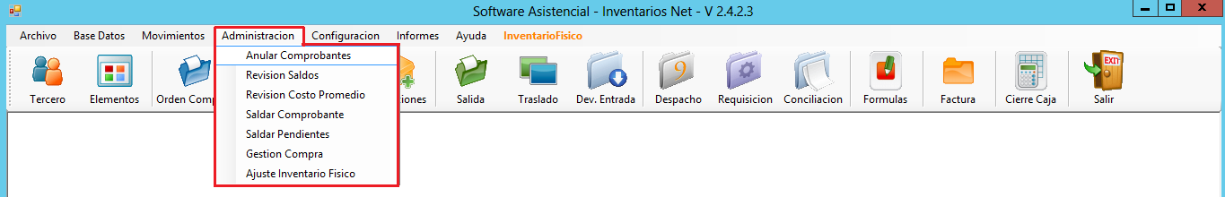 1. Selecciona la pestaña Administración y haz clic en Anular Comprobantes