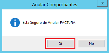 3. Haz clic en el botón para 4. Si estas seguro de Anular el Comprobante, haz clic en la opción Sí.