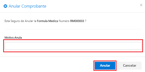 3. Digita el Motivo de la Anulación y haz clic en Anular.