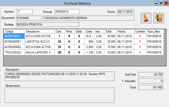 4. El Detalle de la Fórmula se visualiza de la siguente manera.