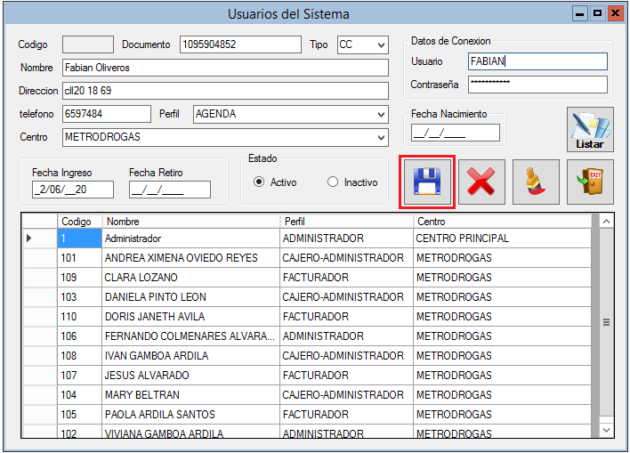 2. Diligencia los datos del Formulario y haz clic en el botón Guardar.