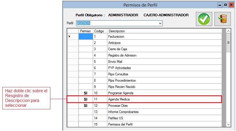 2. Selecciona el tipo de Perfil y selecciona los permisos que desees asigar segúl el rol que desempeñe.