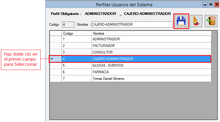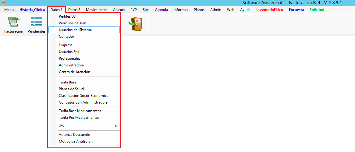 1. Ingresa a la opción Datos 1 y haz clic en Usuarios Sistema.