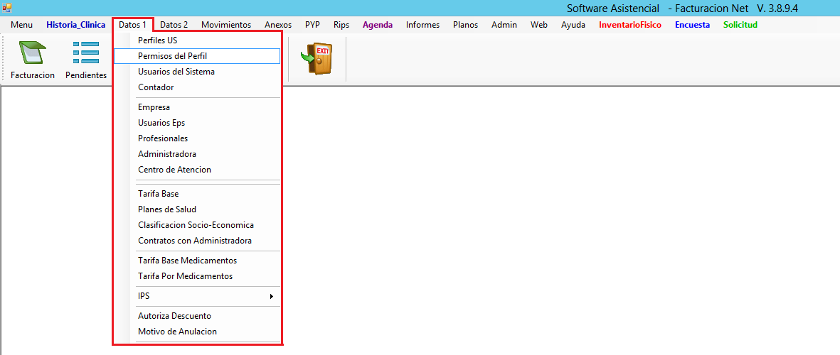 1. Ingresa a la opción Datos 1 y haz clic en Permisos de Perfil.