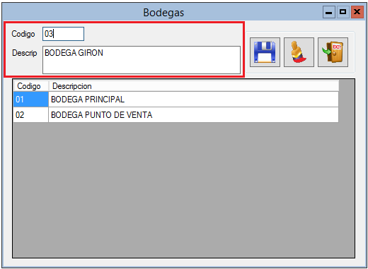 2. Diligencia Código consecutivo, Descripción y haz clic en Guardar.