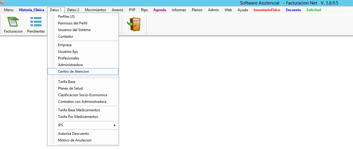 1. Ingresa a Datos 1 en el Menú Principal y selecciona la opción Centro de Atención.