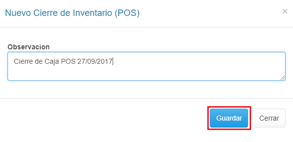 4. Se muestra un cuadro para el Nuevo Cierre Ingresa una Obsevación para generar el Cierre.