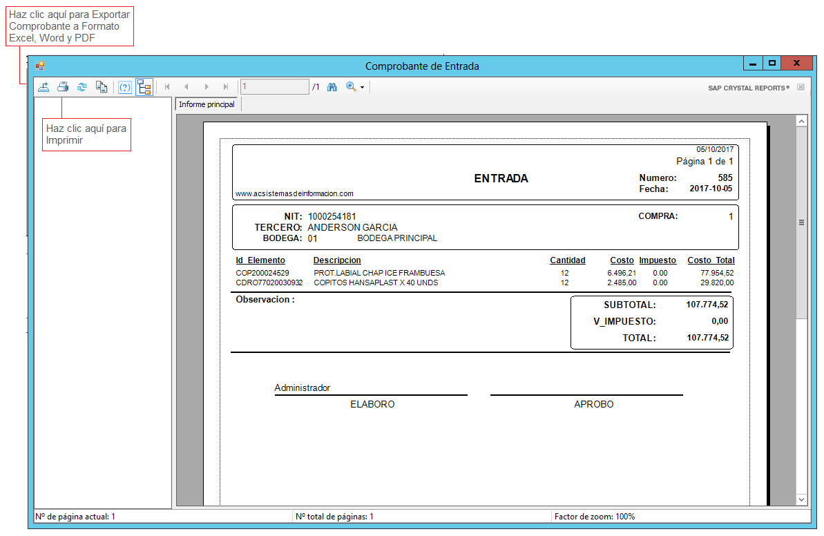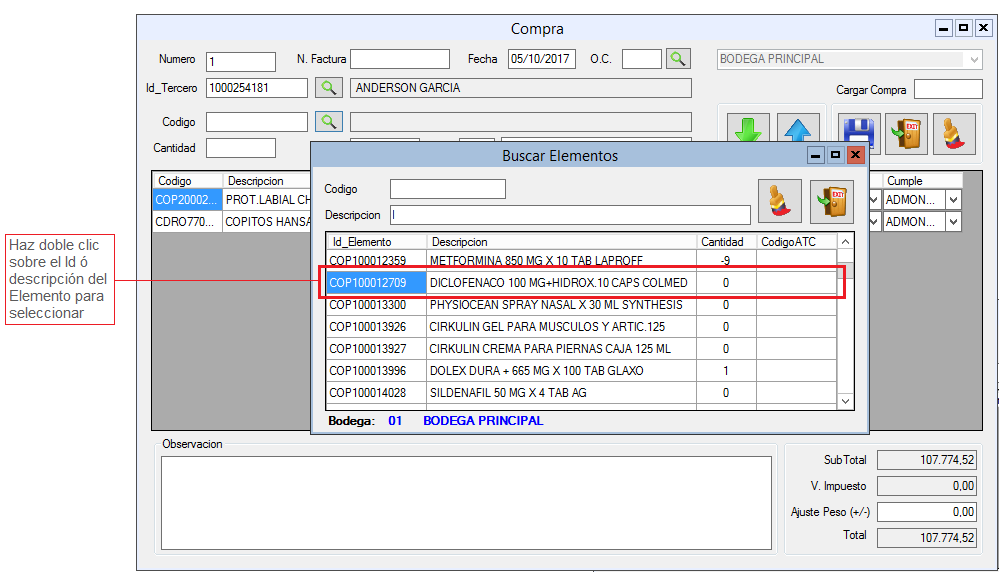5. digita la Cantidad y agrega cada Elemento haciendo clic en el botón Agregar 6. Para finalizar haz clic en el botón 7. En el cuadro de texto para confirmar Generar el Comprobante, haz clic en Sí.