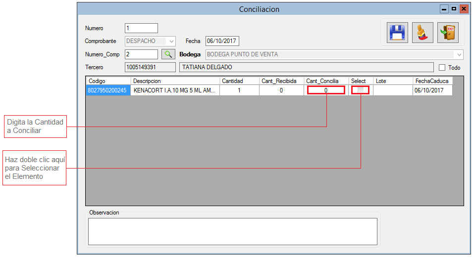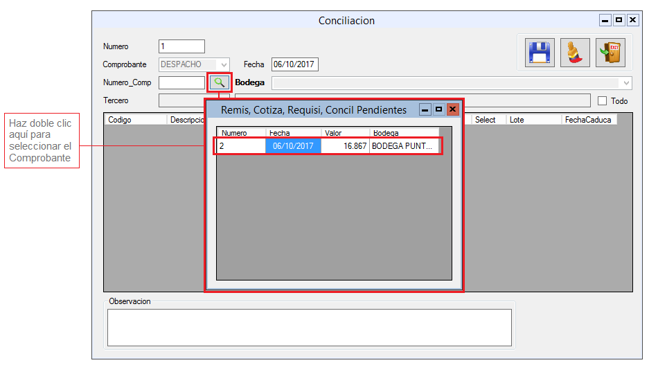 2. Selecciona el Comprobante haciendo clic en el botón de Busqueda.