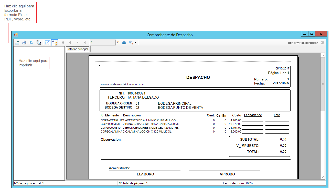 9. El comprobante se visualiza de la siguiente manera: