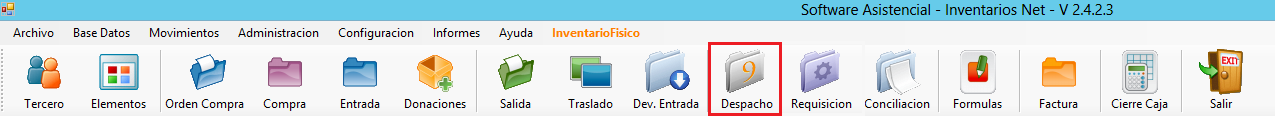 1. Selecciona Despácho en el Menú Principal.