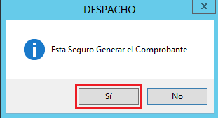 6. Para finalizar haz clic en el botón 7. En el cuadro de texto para confirmar Generar el Comprobante, haz clic en Sí.