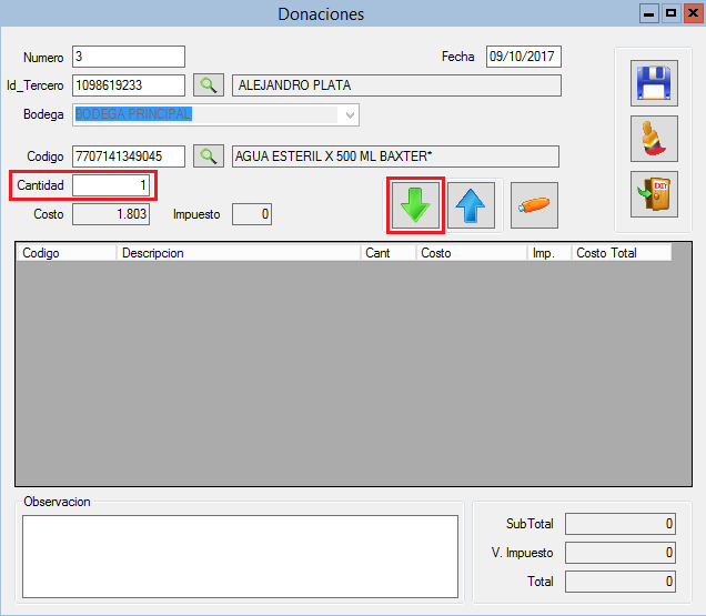 4. Ingrese la Cantidad y haz clic en el botón Agregar.