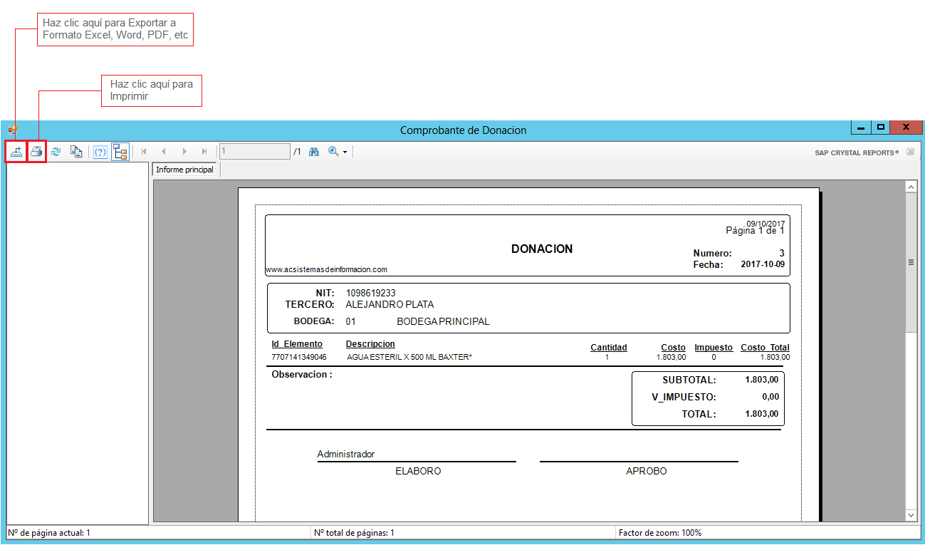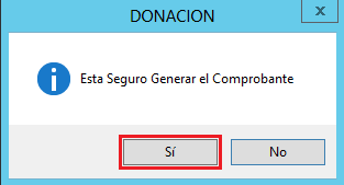 5. Para finalizar haz clic en el botón 6. En el cuadro de texto para confirmar Generar el Comprobante, haz clic en Sí.