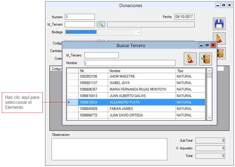 2. Diligencia los Campos Tercero como se realizó en el procedimiento Crear Compra.
