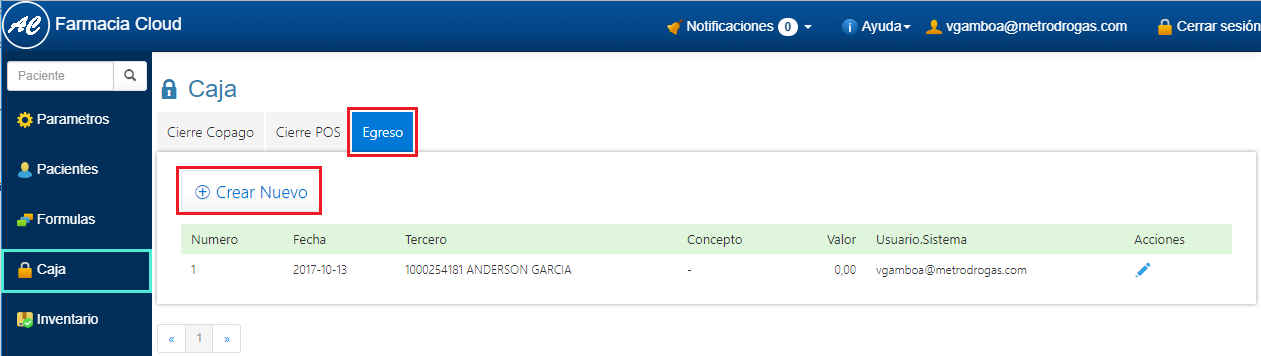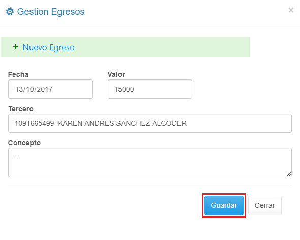 Crear Egreso de Caja |