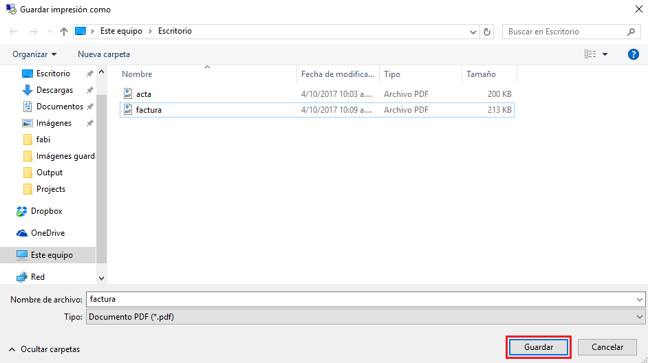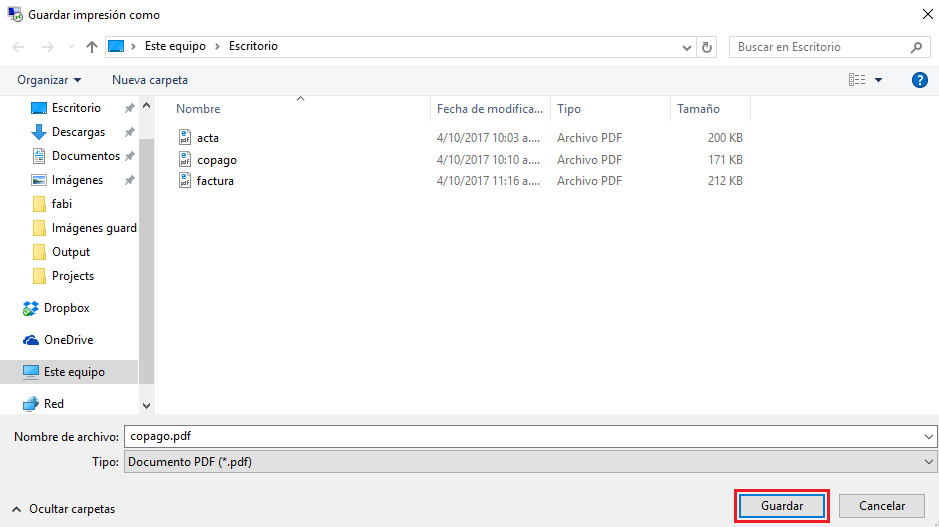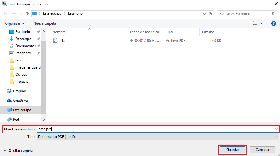 12. Se abre un cuadro para proceder a Guardar el archivo, digita nombre y haz clic en Guardar.