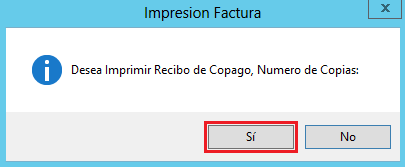 6. A continuación se muestra un cuadro de Texto preguntando si desea imprimir Copago. Haz clic en la opción Sí para Imprimir.