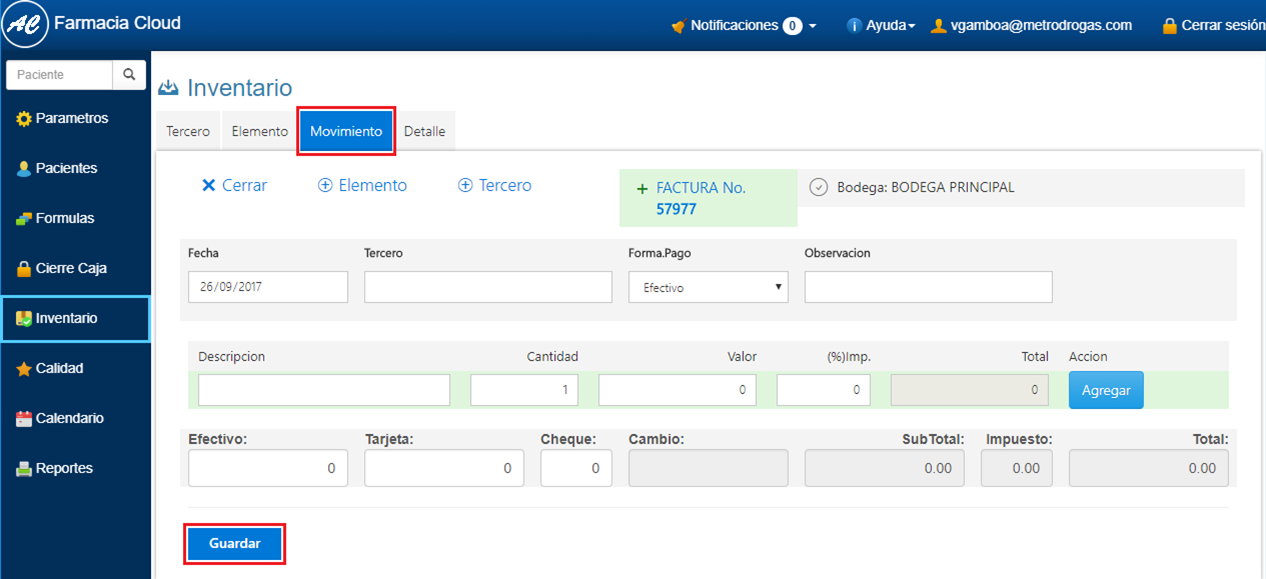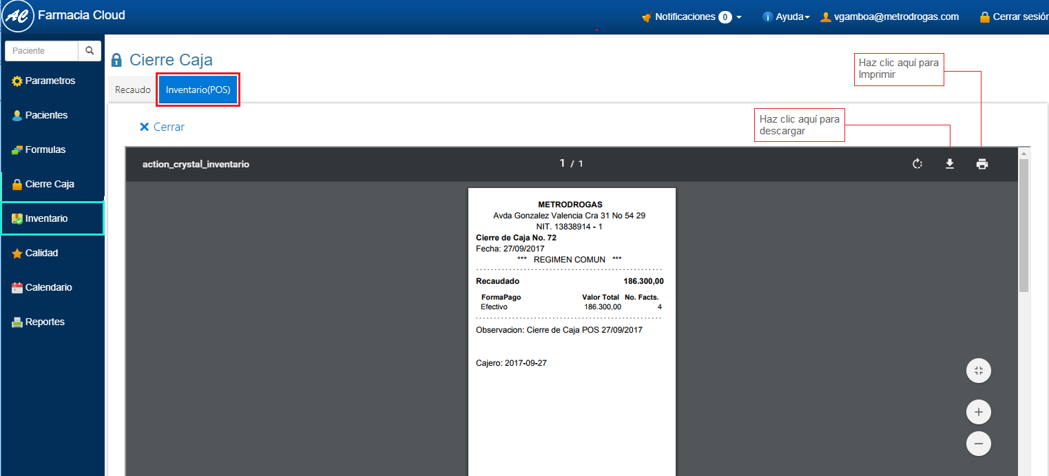 1. Ingresa a Inventario en el Menú Principal de FarmaCloud.