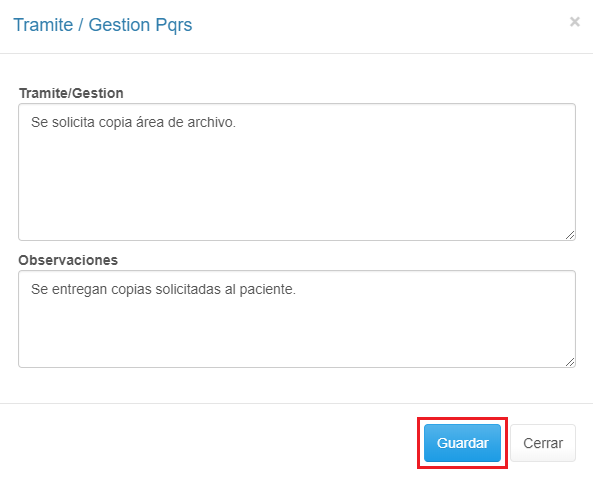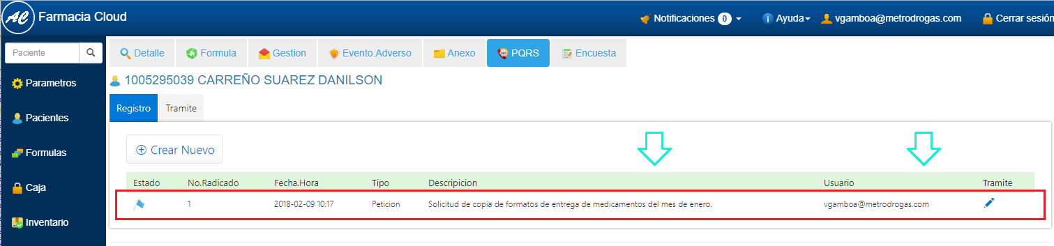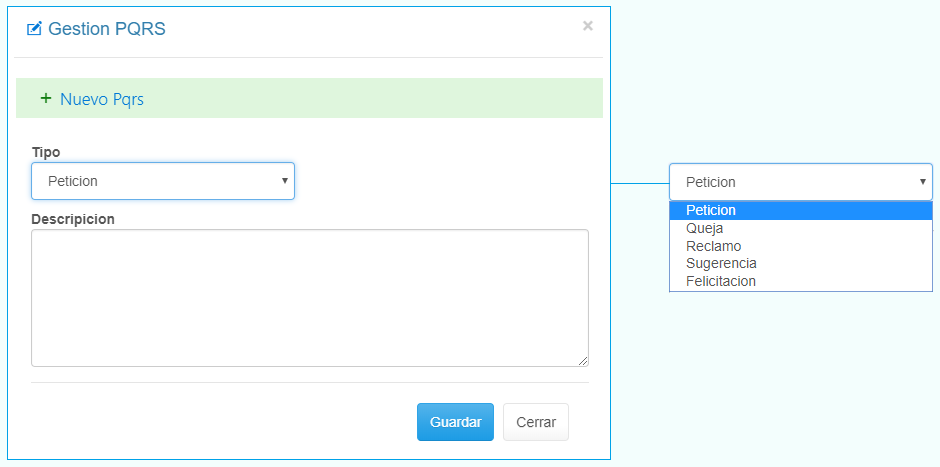 El registro de PQRS, se visualiza de la siguiente manera: