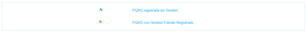 Al inicio de cada registro de PQRS se visualiza un bandera de color azul ó verde que indica el Estado del mismo como se muestra a continuacíón.