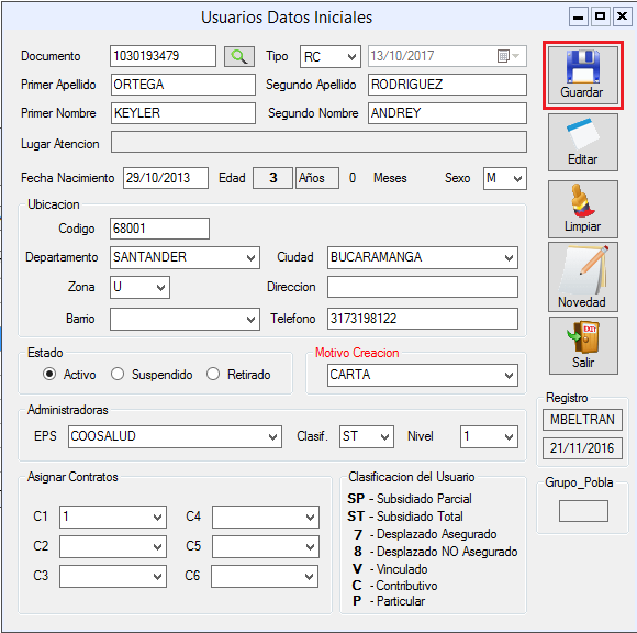 2. Diligencia el formulario y haz clic en el botón Guardar.