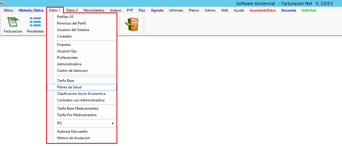 1. Selecciona la pestaña Datos1 y haz clic en Planes de Salud.
