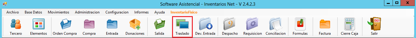 1. Selecciona Traslado en el Menú Principal.