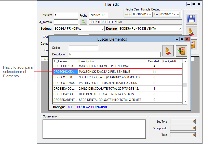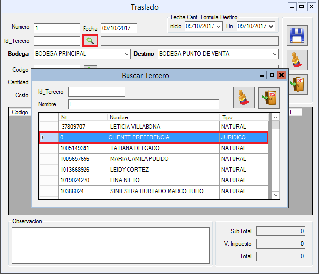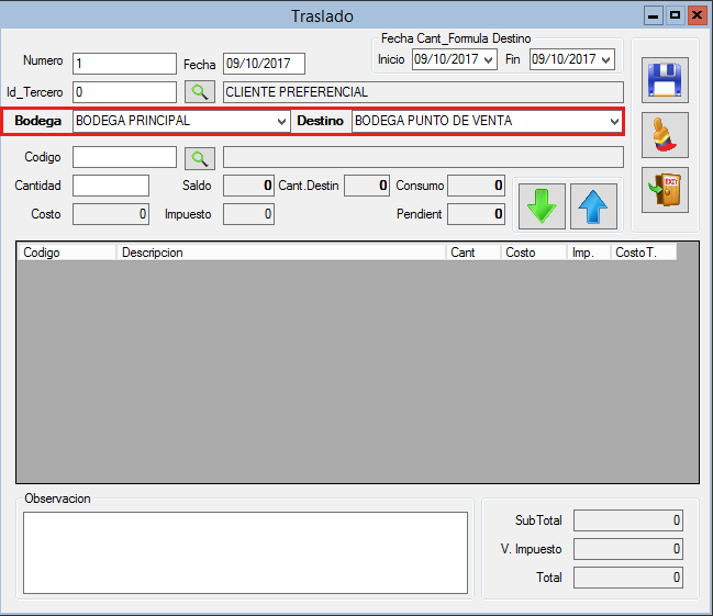 3. Digita Bodega (Origen) y Bodega Destino.