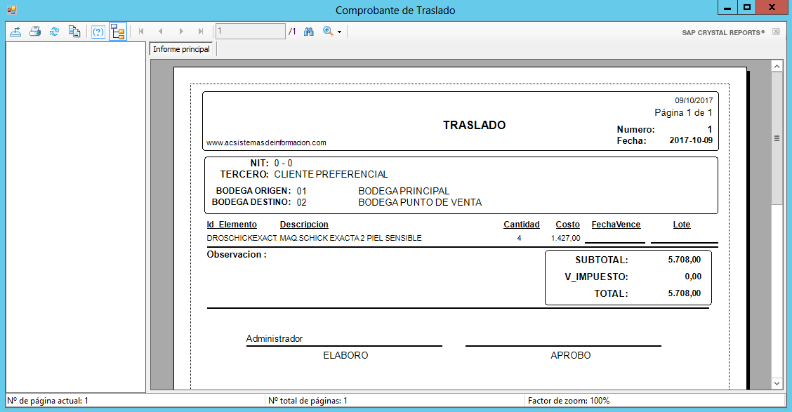 9. El comprobante se visualiza de la siguiente manera:
