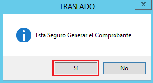 6. Para finalizar haz clic en el botón 7. En el cuadro de texto para confirmar Generar el Comprobante, haz clic en Sí.
