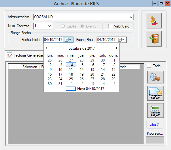 3. Haz clic en el botón en forma de Lupa para seleccionar las facturas a ingresar en el rips.