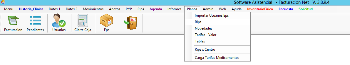 1. Ingrese a la opción Planos en el Menú Principal y haz clic en Rips.