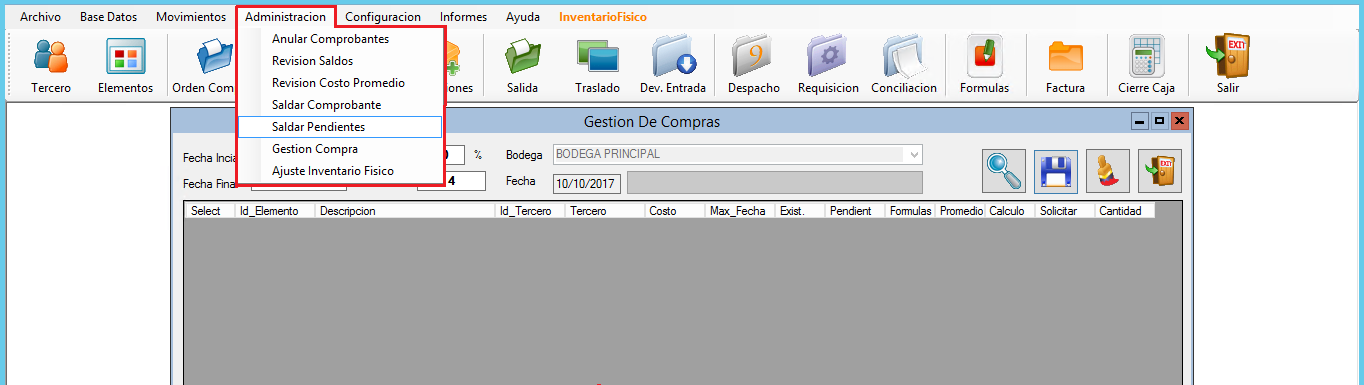 1. Selecciona la seccion Administración y haz clic en Saldar Pendientes.
