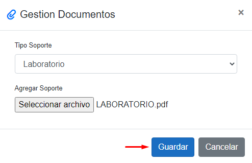 5. Selecciona el Tipo de Soporte que vas a Agregar. 6. Haz clic en el botón Seleccionar archivo.
