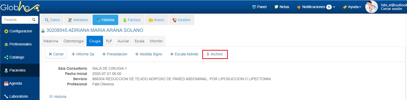 1. Ingresar a la Sala de Cx. Ver aquí 2. Haz clic en la opción Archivo.
