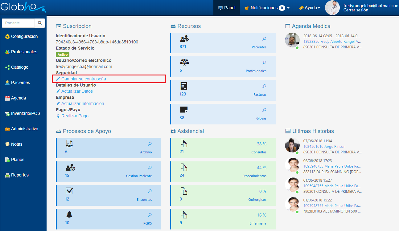 1. Podrás realizar la solicitud de una nueva contraseña ingresando a la opción Cambiar su Contraseña en Panel Principal o haz clic en tu nombre de Usuario.