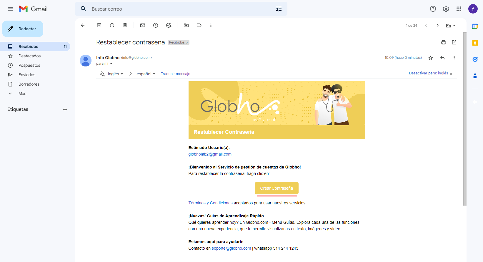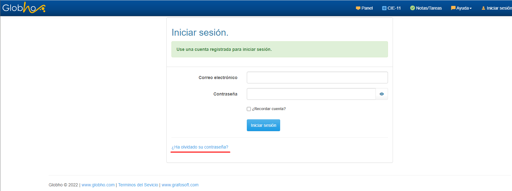 Para realizar el proceso de recuperación de Contraseña, debes haber confirmado la cuenta de tu usuario antes de 24 horas luego de haberlo creado en Globho. Ver aquí Debes realizar la confirmación de tu usuario antes de 24 horas por medio del botón confirmar enviado al correo electrónico registrado. Sí olvidas hacerlo, solicita la confirmación vía Soporte Técnico. Ver aquí |