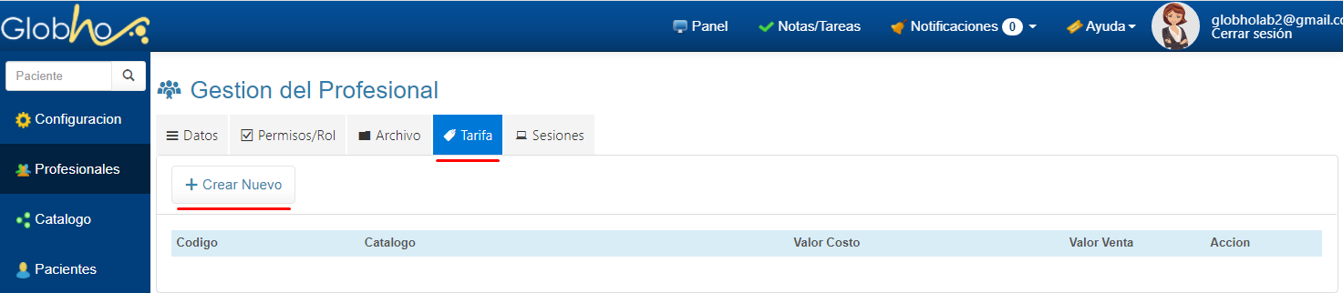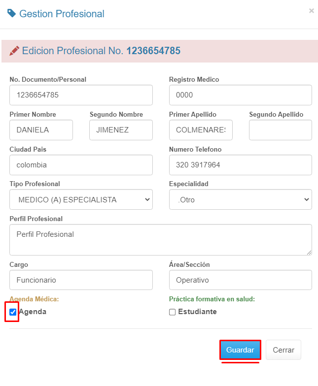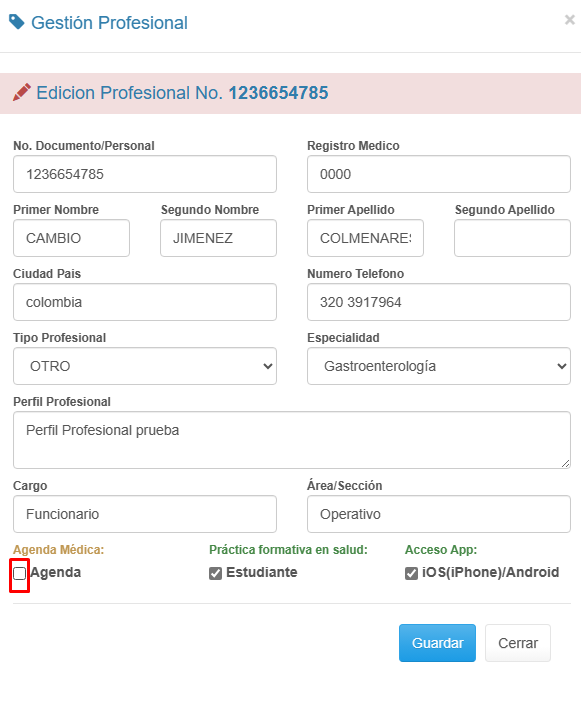 La creación de profesionales se limita al número de usuarios relacionados en el plan suscrito.