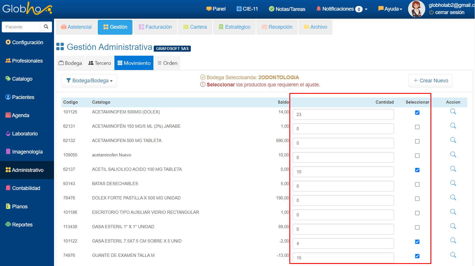 4. Agrega las cantidades Físicas en Inventario y selecciona la casilla de verificación correspondiente.
