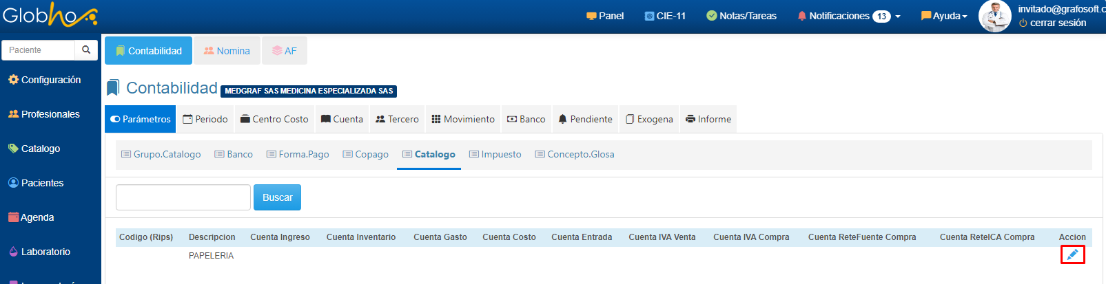 3.1 Haz clic en el botón en forma de Lápiz al final del registro en la columna Acción.