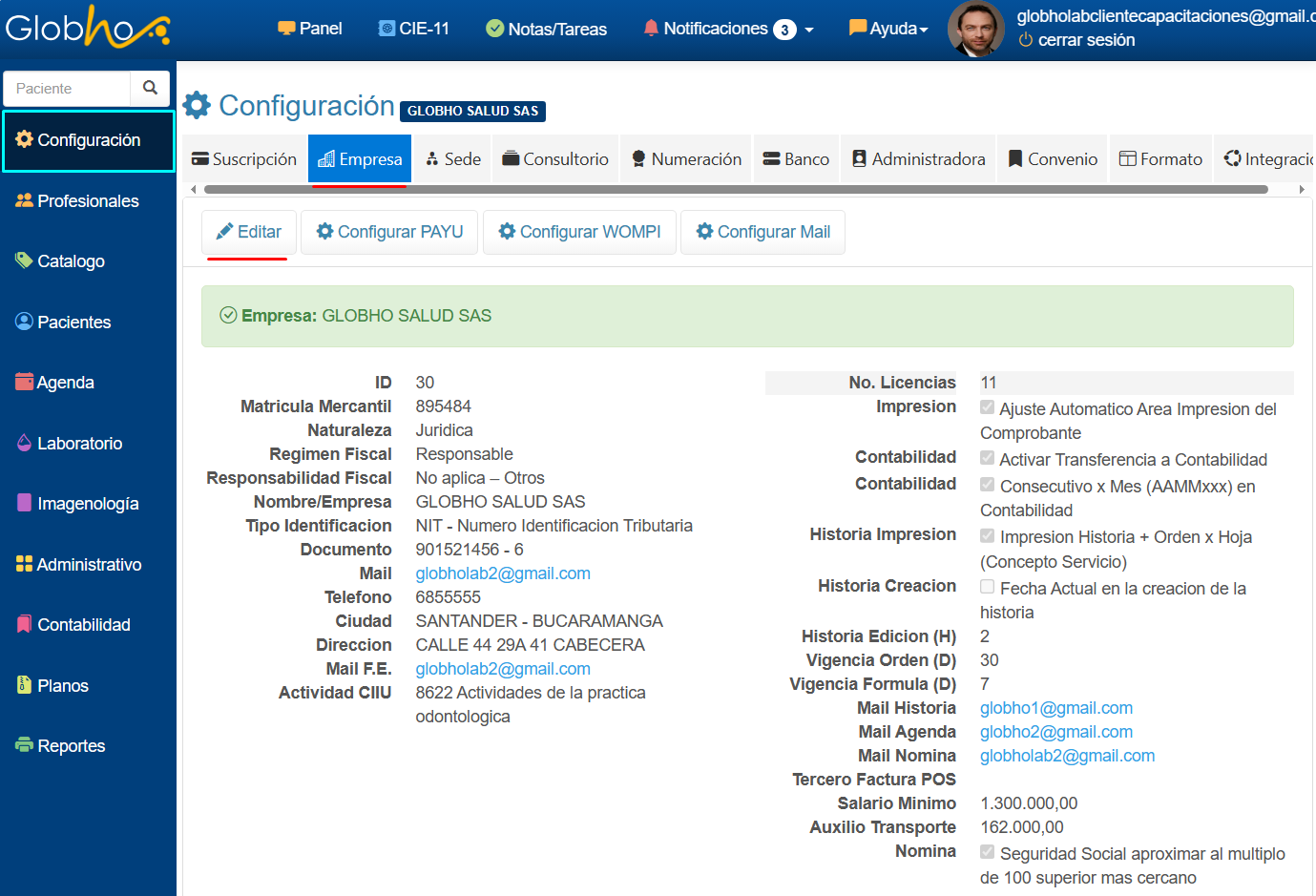 1. Realiza la ruta Configuración-Empresa-botón Editar.