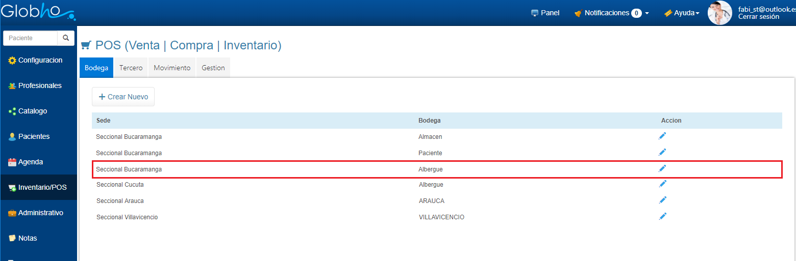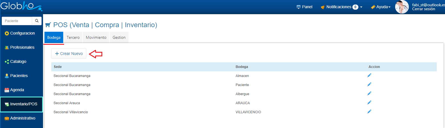 Al terminar la creación de Bodegas podrás hacer uso de la herramienta Editar |