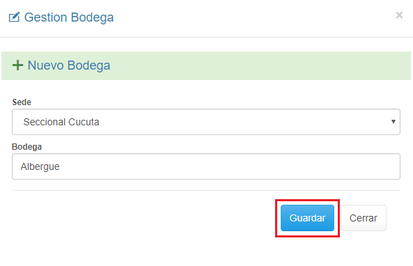 La bodega creada se visualiza de la siguiente manera: