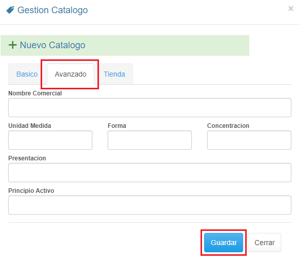 3. Diligencia cada una de las secciones requeridas en el formato Gestión Catálogo y al finalizar haz clic en el botón Guardar.
