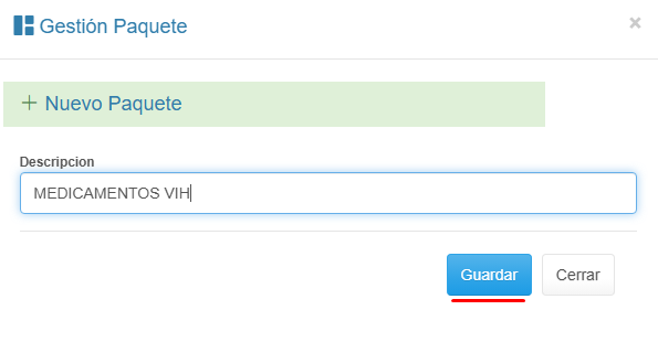 2. Digita la Descripción del Paquete y haz clic en el botón Guardar.